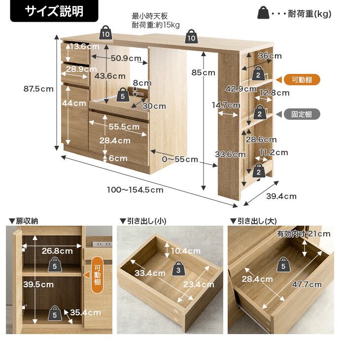 幅100?154.5cm×奥行39.4cm×高さ87.5cm